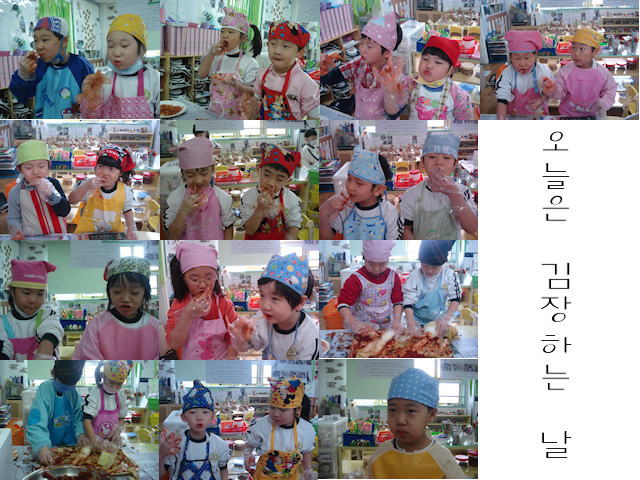 유아 : 선생님, 오늘은 김치가 죽는 날이예요. 왜냐하면 맛있는 김치가 우리 입으로 다 들어갔잖아요. 유아1: 이제부터 김장하는 날은 김치가 죽는 날이야. 하하