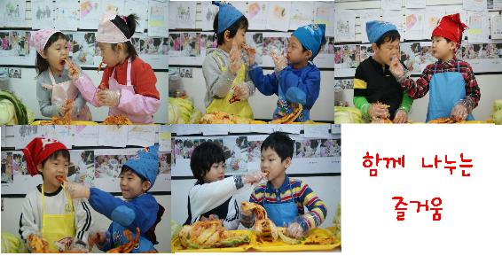 아이들은 배운 순서대로 김장 담그기를 하고 친구들과도 함께 나누어 먹는 법도 알아갑니다.