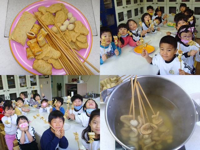즐거운 요리시간, 겨울철 우리 몸을 따듯하게 해주는 어묵탕을 만들어보기로 하였답니다. 여러 가지 모양의 어묵을 꼬치에 끼우고 삶았더니 쫄깃쫄깃 맛있는 어묵에 시원한 국물까지 정말 너무 너무 맛있었어요.