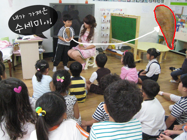 “어? 이게 수세미라고?” “우리꺼랑 다른데?” “엄마랑 집에서 찾아보고 친구들이랑 보려고 가져왔어요.”