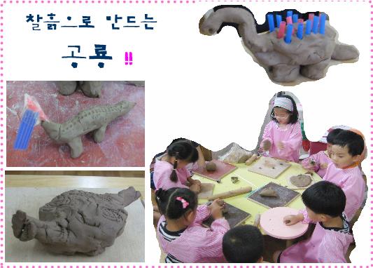 -자신이 생각하는 것처럼 쉽게 움직이지 않는 찰흙... 공룡의 몸통을 만들고 다리 부분을 만들어 붙이니 무너져 버리는 찰흙! 오랫동안 찰흙과 씨름을 하며 균형이 맞지는 않지만 자기만의 공룡을 완성하고 즐거워합니다. 아이들이 만든 자기만의 공룡.. 기대해 봅니다.