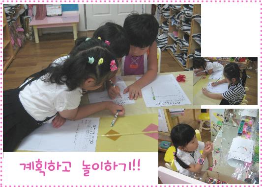 머리속으로 생각만 하고 영역활동을 하던 유아들이 이제는 종이에 내가 할 활동을 그림이나 글로 계획하여 표현하는 활동을 시작합니다.
