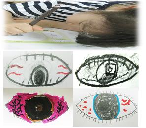 잎새반 유아들은 눈의 구조에 대한 호기심을 가지며 거울을 통해 새롭게 발견한 눈의 모습을 그림으로 표현해 보며 생각을 구체화시켜 나갑니다. 교사: 검은 눈동자, 갈색 눈동자, 흰색 눈동자만 있어도 우리가 앞을 볼 수 있을까?