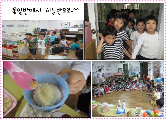 유아: 선생님! 우리 언제 형님반에 가요? 유아1: 나 하늘반에 아는 형님있는데.. 1호차 같이 타거든~ 유아2: 나도 밥 먹을 때 만나는 언니 있거든!!