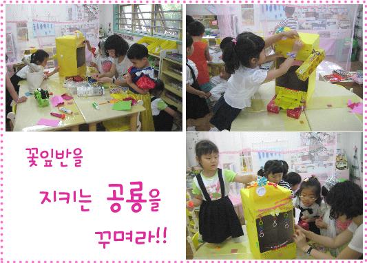 유아: 여자 친구들이 잘 꾸미니깐 너희들이 더 예쁘게 꾸며줘!! 유아1: 그래! 우리한테 맡겨!!