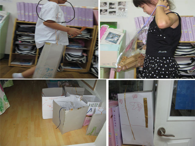 이번주 동안 큰 카프라 가방을 사용해 보고 그에 대한 문제점을 발견하리라 기대했지만 교사들의 생각과는 달리 작게 카프라 가방을 만드는 친구들은 보이지 않아요.