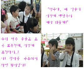유아3: 강아지풀을 사용하면 좋을거 같아요. 강아지풀도 눈썹 처럼 부드러워요.유아들은 <나>의 멋진 얼굴을 표현해 줄 매체물을 바구니에 담아 꾸미기 시작합니다.