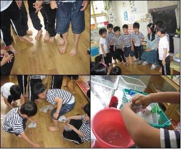 친구들은 물을 좋아하지만, 교실에서 <물>을 접한 놀이를 하는 것이 쉽지는 않습니다. 왜냐하면 물로 놀이를 하다보면 책상 위, 바닥에 물을 흘리게 되고 양말과 옷도 젖고 지나가는 친구들 양말도 젖어서 문제가 생기기 때문입니다.