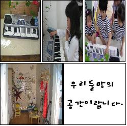 이 밖에도 새로운 도전을 시도한 <물>이라는 매개로 놀이와 실험을 할 수 있는 과학영역과 선생님의 피아노를 호시탐탐 노리던 아이들을 위해 피아노영역을 만들어주었습니다.