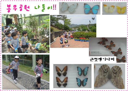 - 나비 생태학습관으로 가는 길.. 다른 유치원 친구들도 만나고 다양한 볼거리로 즐겁게 이야기를 나누며 이동합니다. 유아4: 나비 좀 봐~ 여기 나비 정말 많다. 유아5:나비 색깔이 너무 예쁘다! 파란색. 주황색. 예쁜 무늬가 너무 신기해! 유아6: 어? 이 나비 이름 좀 봐~ 큰 멋쟁이 나비? 유아7: 이 나비가 멋져서 이렇게 이름 지은 건가? 유아8: 우리 반에도 멋쟁이 친구 뽑는 것처럼 나비들도 멋쟁이한테 그렇게 이름 지어 주는 거 아니가? 유아9: 이 나비는 부엉이 처럼 생겨서 부엉이나비라고 이름 지었는가봐~