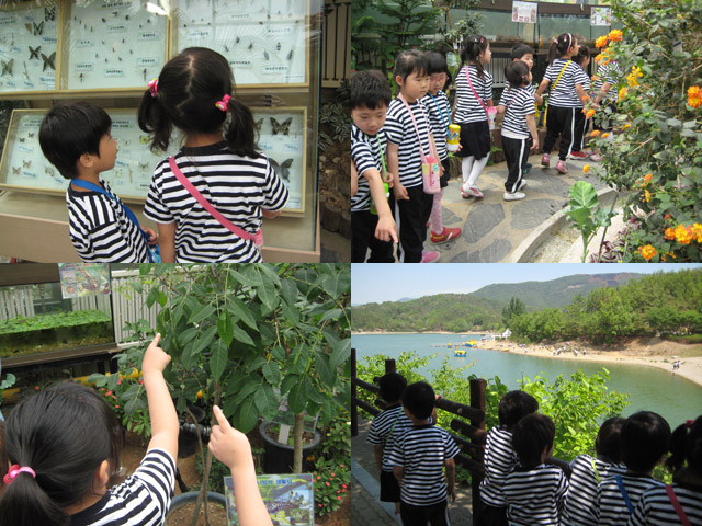 날씨도 좋고 기분도 좋은 아이들과 함께 봉무공원에 가서 여러 종류의 나비도 살펴보고 또 나비가 날아다니는 생태 체험장에도 가보았어요. 여러 가지 나비들이 이리저리 정신없이 날아다니자 아이들은 신기하기도 하면서 무섭기도 한지 이리 저리 손사래 치기도 했어요. 오늘 하루 예쁜 나비들을 보며 따뜻함을 느꼈고, 단산저수지로 인해 시원해진 마음을 안고 즐겁게 다녀올 수 있었답니다.