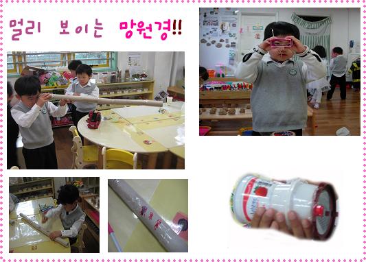 -조형영역에서 만든 망원경! 친구가 만든 망원경이 신기하고 흥미로워 다른 친구들도 다양한 재활용 매체로 망원경 만들기를 시작했답니다.