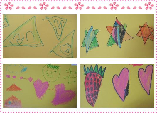 유아: 달 모양!! 마음이 동그란 달 같이 생겼을 것 같아요. 유아1: 내 마음은 솜사탕 같이 생겼을 것 같아요. 교사: 솜사탕?? 마음이 솜사탕 같으면 너무 먹고 싶을 것 같은데!! 유아2: 니 마음 다 먹어 버리면 어떻하지? 유아1: 그래도 달콤한 솜사탕 마음이 좋잖아.유아3: 유림이 스타킹에 있는 하트 모양처럼 생겼을 것 같아요. 유아4: 나는 세모 모양!! 유아5: 나는 선생님 얼굴처럼 생겼을 것 같다. 선생님: 선생님 얼굴이 마음 같아? 유아5: 내 마음이 선생님 얼굴처럼 길쭉할 것 같아서요! 선생님은 마음이 어떻게 생겼을 것 같아요? 선생님: 방 같이 생겼을 것 같아~ 찜질방!! 유아6: 찜질방이 좋아서요? 유아7: 선생님은 마음이 뜨실 것 같아서 찜질방이라고 한 거죠? 선생님: 선생님 마음은 뜨거운 찜질방처럼 따끈따끈 할 것 같아. 유아8: 내 마음은 쌩쌩 자동차 모양 같이 생겼을 것 같다!