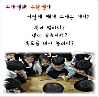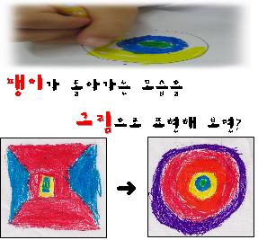 교사: 팽이가 돌아갈 때 어떤 색들을 발견했어요?