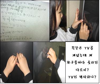 쉬워보이는 <키 재기 활동>에는 어디에서 시작하고, 클립과 건전지 끝을 어떻게 이어서 잴 것인지, 숫자 세기, 정확한 끝 지점에 다시 이어서 길이를 재어야하는 많은 과제를 한꺼번에 수행해야 한답니다. 유아1: 1, 2, 3, 4.....20! 와 내 식물은 건전지 20개다! 유아2: 좋겠다~ 내 껀 아직 2개인데. 옆에서 가만히 지켜보니 건전지 잡은 손을 조금씩 위로 올려가며 열심히 숫자만 세고 있는 모습들이 보입니다. 어떤 친구는 건전지 끝을 손가락으로 잡고 다시 이어서 건전지를 위로 올리기도 하고, 세로로 재는 친구, 가로로 재는 친구 등 다양한 키재기 모습이 보여요. 공유 시간에 친구들의 키재기 동영상과 사진을 보면서 TV를 재어보기로 합니다. 5명의 친구가 재었는데 왜 숫자가 다를까요? TV 길이가 자꾸 변하는 것일까요? 하늘반 의 <키재기 활동>을 기대해 주세요.