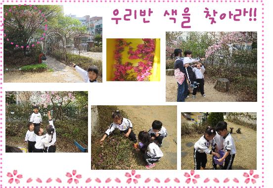 - 유치원 마당에서 꽃잎반 색깔 찾기!! 조별로 바구니에 꽃잎반 색을 담아 보았답니다.