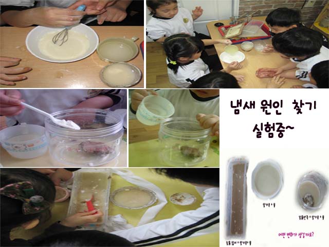 올챙이와의 관계맺기를 통해 개구리의 성장도 관찰하고 또 생명체에 대한 소중함도 함께 알아가는 시간이 되기를 바랍니다.<냄새 원인 실험>
