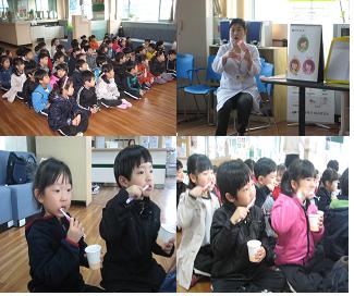 4월의 첫날 구강교육을 받으며 치아가 하는 일, 올바른 칫솔질, 이가 썩는 음식과 썩지 않는 음식에 대해 배워 보고, 직접 칫솔질해보는 경험을 해 보았습니다.