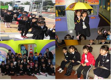 잎새들의 첫 견학! 직접 차도 타보고, 왼쪽 오른쪽도 살피며 손들고 신호등도 건너보고, 육교도 건너보고, 다양한 교통안전 게임도 해 보았습니다.