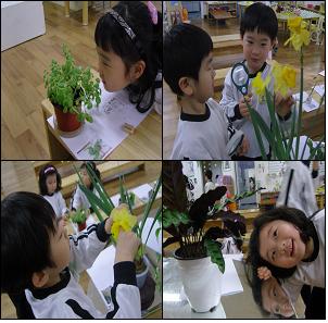 유아들은 식물의 이름을 짓기 위해 식물의 여러 특징들을 탐색하면서 식물을 하나의 생명체로 인식하며 관계를 맺어가고 있습니다.