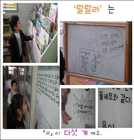 교사: <랄랄라>는 <ㄹ>몇 개예요? 유아8: 5개! 우와~