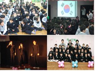 입학식에서는 ‘한림유치원에 입학 한 것을 축하한다’는 원장 선생님의 말씀과 각 반 선생님의 소개가 있었습니다. 우리 반 선생님만이 아닌 한림 유치원에 계신 모든 선생님에게 인사 잘하는 친구들이 되겠다고 약속도 하였습니다. 그리고 ‘굴개 굴개 청개구리’ 인형극도 보았답니다.