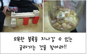 교사 : 구슬 대신에 굴러 갈 수 있는 것을 찾아보는 건 어때?