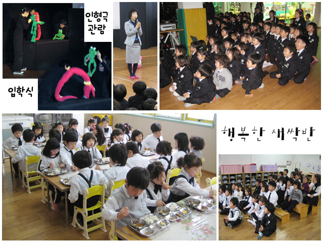 입학식을 위해 모두 모인 강당에서는 우리와 같은 친구들도 만났고 형님들 그리고 원장 선생님, 원감 선생님, 다른 반 선생님들도 모두 만날 수 있었답니다.