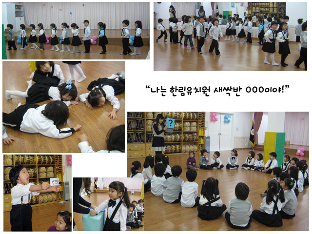 인생의 긴 여정의 시작점! 출발선에 서있는 아이들이 이제 막 한 발걸음을 떼었습니다. 앞으로 한발 한발 나아가면서 부딪히게 될 수많은 일들이 기다리지만 우리가 함께 하나가 되어 손을 마주잡고 갈 수 있다면 어떠한 일도 두렵지 않을 것입니다 함께하는 기쁨, 함께하는 행복을 느끼며 꿈을 향해 힘차게 나아갈 아이들을 위해 끊임없는 격려 보내주셨으면 합니다.“친구들아 안녕 나는 한림유치원 새싹반 OOO이야”