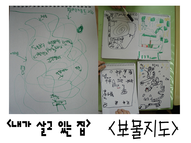 내가 살고 있는 곳을 지도로 나타내는 친구가 있습니다. 그리고 이 지도의 영향으로 ‘보물지도’를 그리는 친구들이 생깁니다. 보물지도에 관심이 있는 친구들이 모이게 되고 그것에 대해 이야기를 나눕니다.