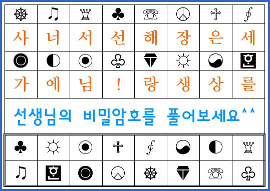그래서 선생님도 어떻게 마음을 전할까 고민하다가 비밀암호 편지를 썼어^^ 선생님은 너희들에게 어떤 말을 하고 싶을까?? 선생님의 마음을 알아 맞춰 보세요^^