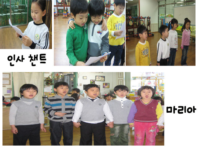 도레미 앙코르 팀, 외로운 염소치기 팀, 마리아 팀, 인사 팀 4팀으로 나뉘어져 노래와 동작연습, 그리고 대사연습까지 즐거운 마음으로 해내고 있는 유아들이 대견스러워 보입니다.