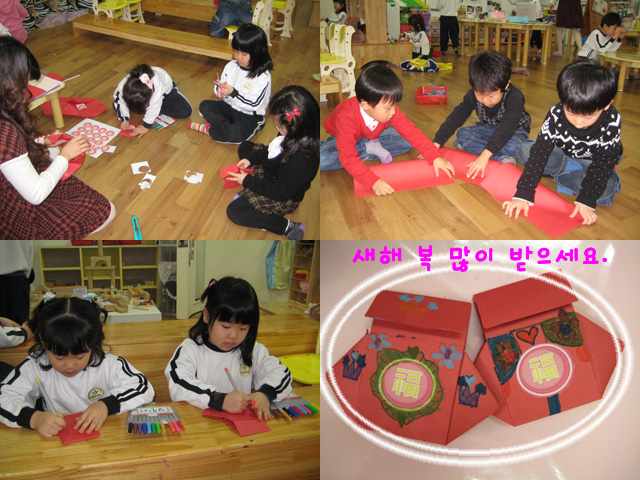 이제 곧 우리 민족 최대 명절 설날이 다가옵니다. 설날을 맞이하여 우리 새싹반 아이들과 함께 모든 사람에게 희망과 사랑 그리고 행복을 나눠줄 수 있는 복 주머니를 만들어 보았어요.