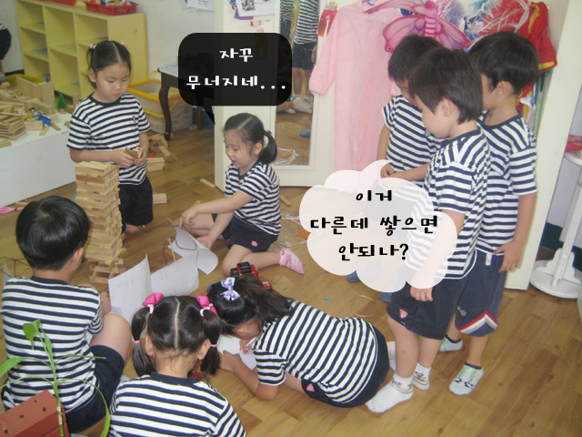 아이들은 결국 다시 만들어 보기로 하였고, 수정하려고 하던 찰나에 몇 유아가 말을 꺼냈다.