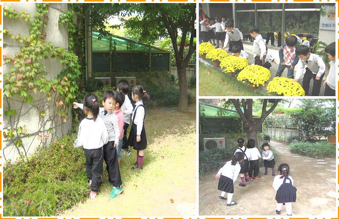 교사: 그러면 우리 유치원 마당에 가서 가을을 찾아볼까?