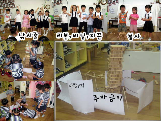 아이들은 카프라에 줄을치기 위해 이것 저것 재료를 구하러 다녔다. 그리고는 다른 아이들에게 보여주며재료를 하나 하나 검증 받기 시작했다.