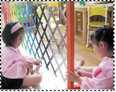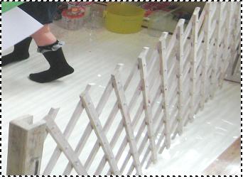- 미술영역과 조형영역의 경계를 두고 있는 흰색 주름문!! 잎새반 어린이들은 이 문을 미술방 문이라고 부르며 미술활동을 할 때 문을 길게 펼쳐둔다. 그러나!! 이 문은 흰색인데 어린이들의 손때가 묻어 지저분하였다.