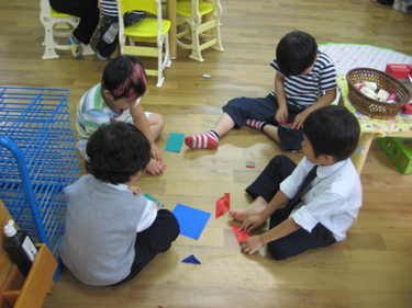 유아들: 그거 말고요. 네모모양요. 큰 색종이요.