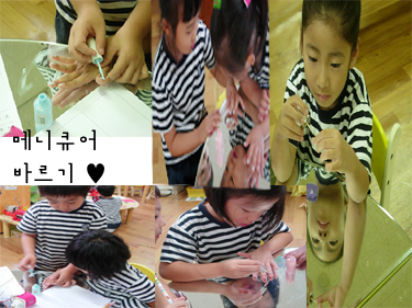그런데 그 모양은 모두가 X자를 해야 한다고 하고, 비슷한 모양으로 만들어 집니다. 유아들의 표창은 왜 다 같은 모양을 하고 있을까요?<메니큐어 바르기>