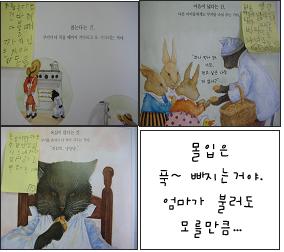 함께 모여 <몰입>이 무엇인지 이야기를 나누며 우리는 <푹~빠지는 것>이라는 결론을 내려봅니다. 그리고 우리도 몰입의 즐거움을 느껴보려 하지요. 이제 교사들은 조심스레 책과 내가 이야기를 나눌 수 있는 방법을 친구들에게 소개하려 합니다. 책을 읽다가 생각나는 나의 생각을 책 속에 그대로 흔적을 남겨 또 다른 하늘반 친구들의 책으로 탄생하는 과정이지요! 포스트 잇에 내 생각을 적고 붙여놓으며, 다른 친구의 생각도 읽고 내 생각도 함께 나눌 수 있어요! 할 수 있을까? 라고 생각했던 교사들도 조금씩 놀라고 있답니다. 하늘반 친구들이 책과 소통할 수 있는 방법을 찾고 몰입의 즐거움을 느낄 수 있기를 오늘도 기대해봅니다.<감사에서 비롯된 식물 친구 사귀기>