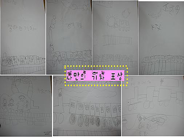 아이들은 자신의 기차를 그리면서 친구들의 그림에 대해 자신들의 생각을 이야기 합니다.