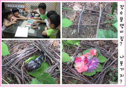 유아10: 움직이질 않아요. 죽었어요. 유아11: 밖에 나가지 못해서 답답할거예요. 밖에 보내 주어야 해요.- 더 이상 장수풍뎅이가 움직이질 않아서 밖으로 보내줘야 한다는 의견이 많아졌다. 유아2: 마당에 묻어줘야 해. 유아5: 유아장수풍뎅이는 바람이랑 햇볕을 받아야 살아나요. 유아11:우리 집을 만들어 줘요. 유아12: 우리만 알 수 있는 곳에 둬요.