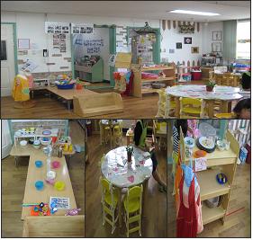 방학을 보내고 교실로 들어선 하늘반 친구들의 놀이를 살펴보니 활동의 변화가 눈에 보이네요. 많은 친구들로 붐비며 활발했던 식당영역에는 아직도 친구들이 있긴하지만 그리 많은 친구들이 활동하지는 않아요. 그리고 남자친구들이 교실에 있는 적은 양의 블럭에 관심이 많아 보입니다. 친구들을 지켜보던 교사도 교실 환경에 변화가 필요함을 의논합니다. 교사들은 친구들의 변화를 관찰하며 욕구를 충족할 수 있는 공간을 새롭게 마련하기 위해 기존의 교실 공간에서 한켠을 비워두기로 합니다.