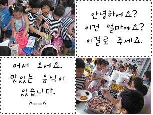 * 즐거운 시장 놀이 날!! 그리고 이슬반은 시장 놀이에서 빠질 수 없는 분식점입니다.분식점의 이름은 한 친구의 생각에서 나온 ‘단백질과 탄수화물이 넘쳐 기력이 넘치는 분식점’ 으로 정하였습니다. 이슬반 친구들은 우리 반에서는 무엇을 팔까? 어떻게 팔아야지? 어떤 물건을 살까? 라는 생각에 모두 들떠있었습니다. 그리고 A조, B조로 나누어 파는 사람과 사는 사람 모두 되어보았습니다. 음식을 파는 사람이 되었을 때는 손님을 반갑게 맞이하고 분식점을 안내하는 역할을 하고, 사는 사람이 되었을 때는 장바구니를 들고 필요한 물건을 꼼꼼하게 골랐습니다. 시장 놀이가 끝나고 지나가는 친구들이 “분식점 음식 너무 맛있어요.”라고 할 땐, 이슬반 친구들의 기분은 최고였죠.[공격놀이]