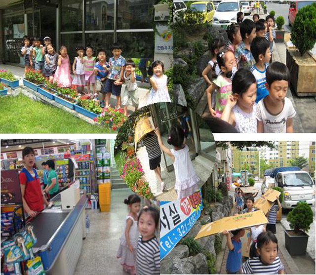 이렇게 하여 박스를 구하러 인근 마트로 향합니다. 마트에 가서 준비했던 이야기를 하고 무사히 박스를 구하고 유치원으로 돌아옵니다.