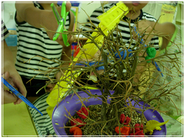 - 친구의 손과 원숭이를 아프게 하는 나무에 가시를 가위로 자르기 시작합니다. 유아들은 가시를 자르며 나무와 가시의 차이를 생각해 봅니다. 그런데 뾰족한 가시를 점점 잘라갈 수록 몇 명의 유아들의 목소리가 높아지게 됩니다. 유아: 그러다 나무도 다 없어 져서 원숭이 집도 없어지겠다.