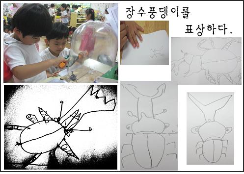 - 장수풍뎅이를 관찰하는 친구들이 많아지고 장수풍뎅이를 그림으로 나타내며 자세히 표현해 본다.* 장수풍뎅이가 또 사라졌다!!