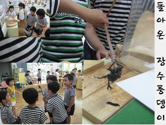 유아2: 야· 이제 장수풍뎅이 자기 자리에 놔도라~ 좀 쉬게 놔도라.