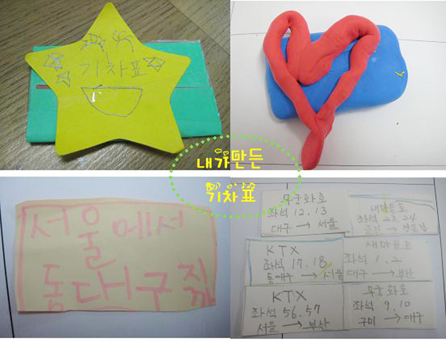 표에 적힌 다양한 숫자와 글자를 모두 이해 할수는 없었지만, 꽃잎반 기차놀이에 필요한 것은 표를 내고 탄다는 그 자체에 의미를 두고 있습니다.