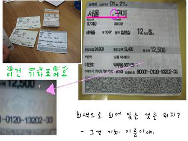 T: 무엇을 보고 기차표인 줄 알았니?